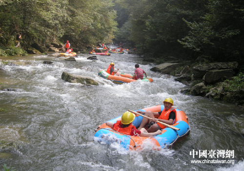 中国台湾网9月4日常德消息 日前,参加2012年第十二届湖湘文化之旅“青春两岸行·牵手桃花桃”活动的台湾青年学生与常德青年学生结对,来到常德市桃源县西安镇山洞溪进行水上漂流。