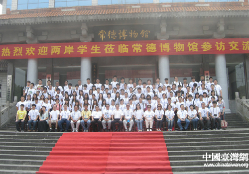 台湾常德两地青年学生在常德博物馆合影留念。(图片来源:常德市台办)