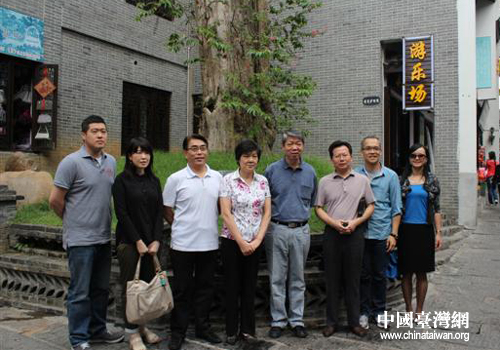 张孝威一行在岳阳风景区千年古树下合影留念。(图片来源:岳阳市台办)