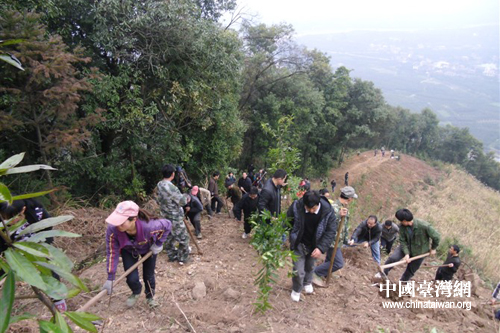 中国台湾网3月4日江永消息 草长莺飞,春回大地。2月27日,湖南江永县台办在江永县委常委、县委统战部部长、副县长的带领下,组织百余人来到黄甲岭石岭村,开展了一场别开生面的义务植树活动。当天与当地林农一起共载种天竺桂、杜英、香樟等绿化大苗132株,修建防火隔离林带2000米,载种防火苗木6000株,杉苗1.2万株,种植面积达150多亩,为建设“绿色江永”献上一片“同心林”。(中国台湾网江永县台办通讯员 何丽)