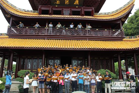 中国台湾网7月24日岳阳消息 “庆历四年春 滕子京谪守巴陵郡 越明年 政通人和 百废俱兴 乃重修岳阳楼……”古朴厚重的岳阳楼前,岳台两地百名青年庄重列队,齐声诵读千古名篇——《岳阳楼记》,由共青团岳阳市委、岳阳市青联承办的“第八届两岸青年联欢节”岳阳行活动日前在岳阳楼前举行。台湾国际青商总会会长郭鸿辉率领20多名企业家和50多名青年学子参加活动。