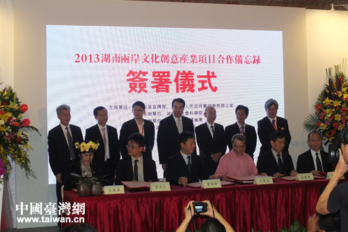 湘台两地文化创意产业合作备忘录签署仪式。(王敏杰 摄)