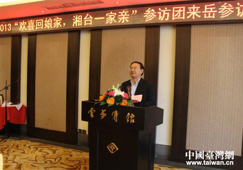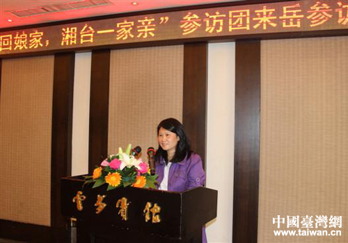 中国台湾网10月21日岳阳消息 10月15日至20日,由湖南省委台湾工作办公室主办、岳阳市委台湾工作办公室承办、台湾湖南文献社协办的2013“欢喜回娘家、湘台一家亲”岳阳行参访活动在岳阳举行。由台湾湖南文献社社长、岳阳籍“大陆新娘”黄国晖女士率领的40名在台陆配欢聚岳阳,共叙乡情友情。
