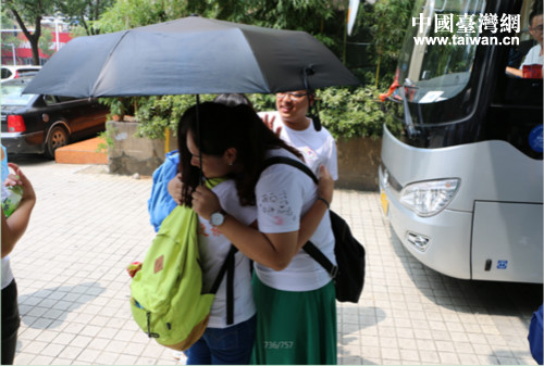 临行之际,小伙伴们深情相拥,依依不舍。最终,在工作人员的连续催促之下,台湾师生才踏上前往张家界的大巴车。