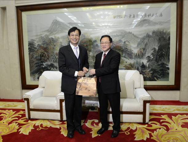 中国台湾网1月12日长沙讯 长沙市市长陈文浩接见台湾合作金库商业银行董事长。(中国台湾网长沙市台办宣传处通讯员 尹文辉)