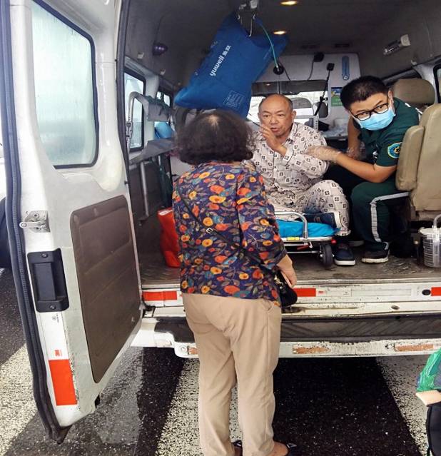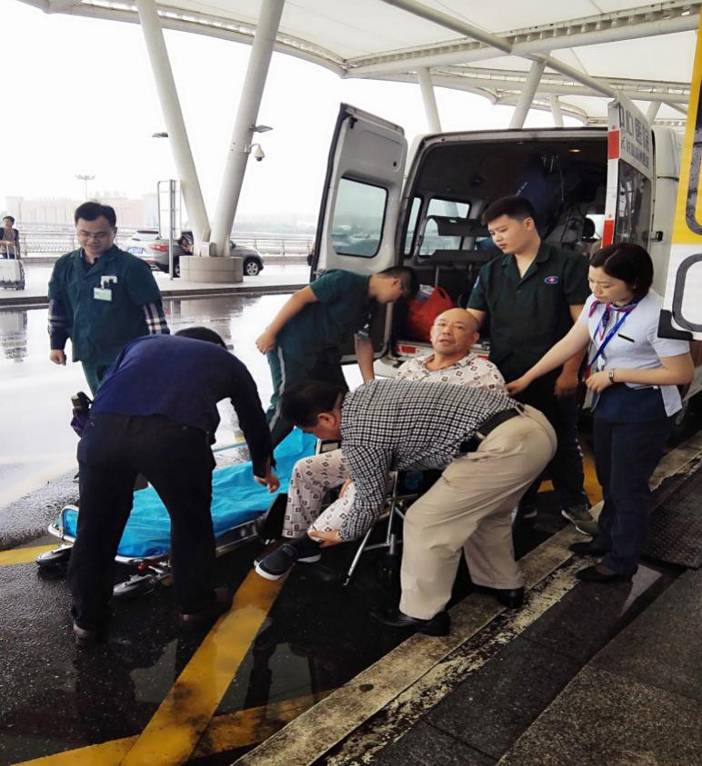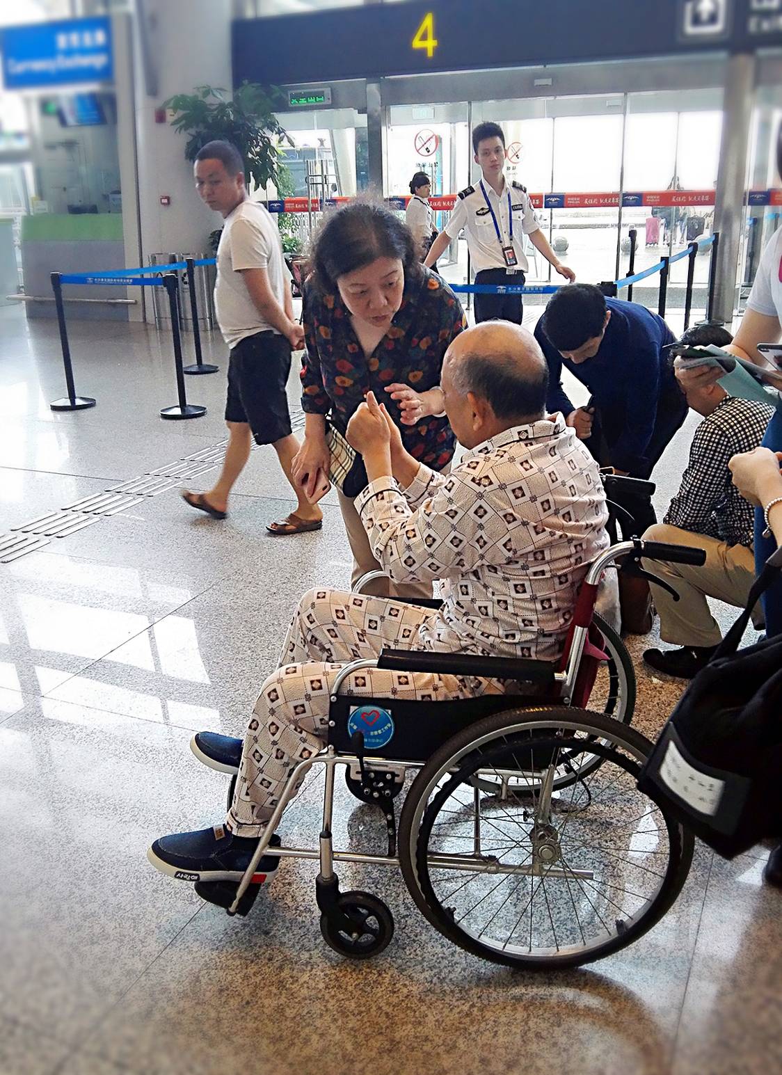 6月29日,杨先生在市台办、市中心医院医护人员的陪同下,由市中心医院120救护专车护送,于下午2时许到达长沙黄花机场,省台办与黄花机场沟通协商,开辟绿色通道,机场值班经理及机场医护全程陪同对接。