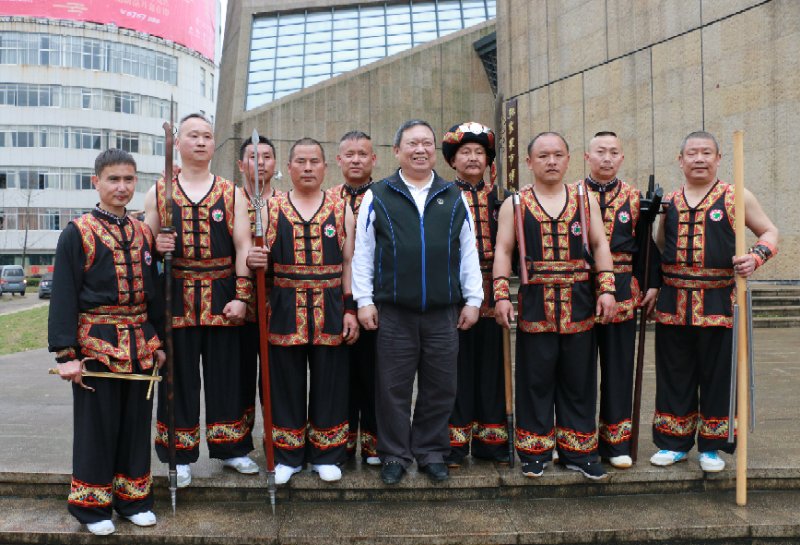 中国台北奥委会参访团成员在张家界博物馆与表演者合影