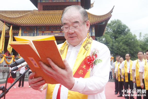 台湾中华神农大帝协进会创会理事长李乾龙担任主祭人并恭读祭炎帝陵文。(中国台湾网扶海涛 摄)