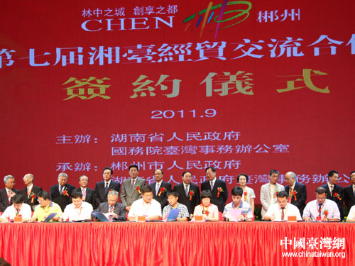 第七届湘台经贸交流合作会签约仪式。图片来源:湖南省台办