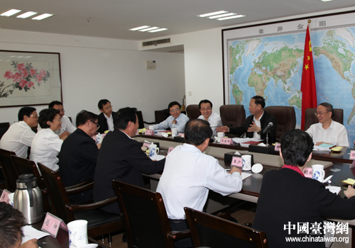江苏省委副书记石泰峰在省台办进行调研(图片来源:江苏省台办)