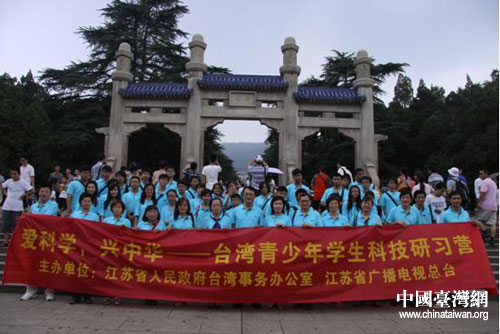中国台湾网8月13日南京消息 8月11日上午,由江苏省人民政府台湾事物办公室、江苏省广播电视总台共同主办,江苏省科学技术馆、台湾中华文化经济交流协会联合承办的“爱科学 兴中华—2012年台湾青少年学生科技研习营”活动,在南京中山陵拉开序幕。来自台湾中南部多所高中的学生及部分大陆高中学生共百人齐聚庄严肃穆的中山陵,开始了他们为期六天的交流研习活动。江苏省人民政府台湾事务办公室副主任石细云出席了活动的开幕式。