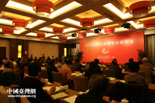 中国台湾网10月24日常州消息 日前,2012常台吴稚晖学术研讨会在江苏常州雪堰成功举办,中国国民党荣誉主席吴伯雄为研讨会题词并发来贺电。江苏省政协副主席范燕青、省海外联谊会常务副会长周和平、常州市委副书记戴源等省市有关部门领导,全球粥会世界总会长、台湾吴稚晖学术研究中心主任,海峡两岸和谐文化交流协进会会长陆炳文、吴稚晖后人吴湘城、吴湘岱等两岸专家学者出席了研讨会。