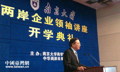 中国台湾网4月27日南京消息 4月27日,由南京大学和台湾中华两岸连锁经营协会共同举办的“两岸企业领袖讲座”在南京大学举行开学典礼。