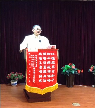 研习营上,精彩演讲不断。专程前来出席活动的台湾新民党党主席、台湾中华孙子兵法研究学会监事乐可铭先生作了“由《孙子兵法》全胜观实现‘中国梦’”的精彩演讲,并向大会赠送了“以德服众需和平,和平斡旋得谋略,谋略智慧源兵法,兵法王者唯孙武”的锦旗。苏州市台资企业协会常务副会长杨肇锋博士作了题为“运用孙子智慧赢得市场竞争”的即兴演讲,赢得阵阵掌声。苏州市孙子兵法国际研究中心副主任韩胜宝结合自己在台湾历时二个多月的采访和研究成果,就“《孙子兵法》在台湾的传播”进行了专题演讲。