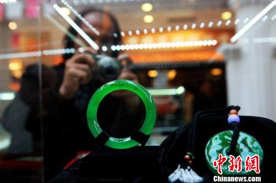 奢华珠宝展上,观众在拍摄一款极品翡翠手镯。李克祥 摄