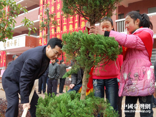 典礼仪式结束后,来宾及领导在校园里种下了常青树。(中国台湾网上饶台办通讯员赵瑞骥)