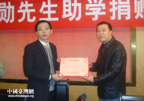 中国台湾网12月27日新余消息 “蔡伯伯的慷慨解囊,让我们看到完成学业的希望,让我们感受到春天般的温暖……”日前,台湾亚煜国际集团总经理、赣台文化交流中心理事长蔡孟勋先生助学捐赠仪式在新余市三中举行,受赠学生刘凡星满怀感激地说。