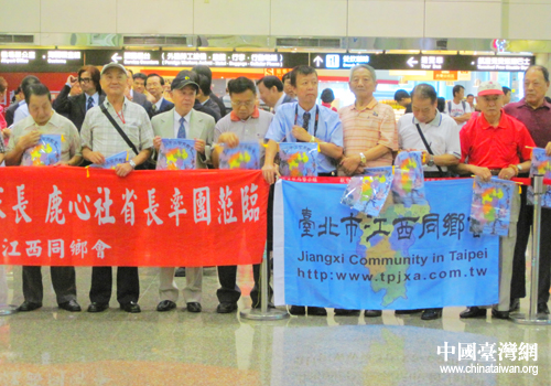 江西旅台乡亲在机场迎接江西省省长鹿心社一行。(图片来源:江西省台办)