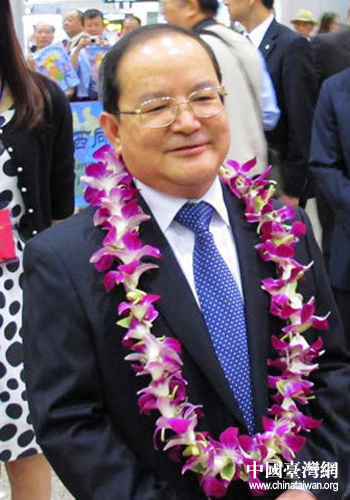 江西省省长鹿心社在台北桃园机场接受媒体采访。(图片来源:江西省台办)