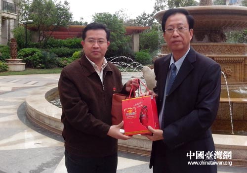 西湖区委副书记李云峰与参访团成员互赠礼品。(图片来源:南昌市台办)
