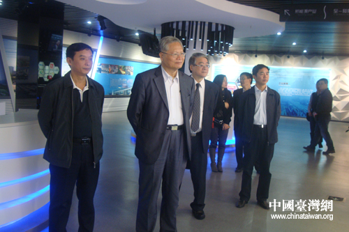 台湾电电公会秘书长陈文义先生一行在市规划展览馆参观考察。(谢忠平 摄)