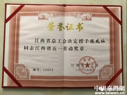 喜讯!铅山台资企业职工陈凤仙获得江西省五一劳动奖章荣誉称号