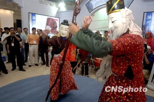 10月29日,殷商时期的闽西北原始傩舞亮相厦门文博会,这种民间舞蹈古朴神秘、粗犷奔放,被人类学、历史学及艺术学视为活化石。当日,第二届海峡两岸(厦门)文化产业博览交易会在厦门开幕。 中新社发 王东明 摄