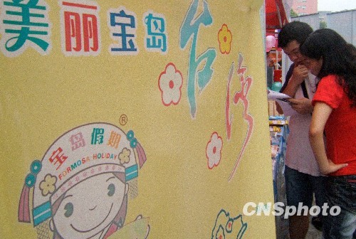 2009年10月12日,据台湾《经济日报》报道,台当局“交通部观光局”统计,今年大陆十一长假,包含观光、业务、会议、探亲等目的来台的大陆客人数共达10957人,比去年同期增加逾1.5倍 中新社发 任卫红 摄