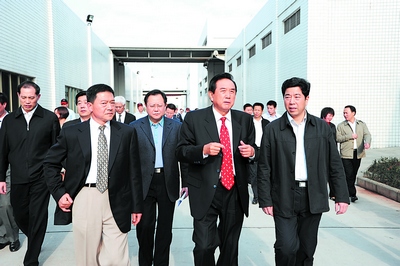 今年4月,省委常委、市委书记陈润儿(前右一)陪同海协会会长陈云林(前右二)视察台资企业长沙镁镁科技有限公司。 资料照片