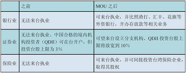 两岸在去年11月时闪电签订了金融MOU,开启两岸后续协商大门,两岸金融MOU已在今年1月16日正式生效。接下来,众所注目的焦点,则将落在后续ECFA何时签订以及关系深远的早期收获清单内容有哪些和海西经济区的议题与内容等。