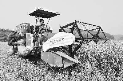 8日,我省闽台农业合作项目——引种栽培株型高雄145号水稻喜获丰收,在南平市延平区王台镇元圩村农民邹湖源的17亩试种田里,收割机收割着一穗穗沉甸甸、金灿灿的稻谷,亩产平均可达456公斤。通讯员 詹国兵 胡信果 摄
