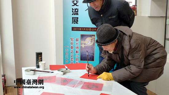 有兴致的顾客也在民俗小店里挥毫为兔年讨个好彩头(中国台湾网 李徽 摄)
