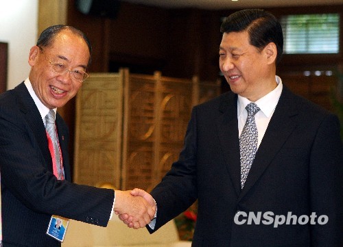 资料图:2010年4月10日下午,国家副主席习近平在海南会见前来参加“博鳌亚洲论坛2010年年会”的台湾两岸共同市场基金会最高顾问钱复。 中新社发 任晨鸣 摄