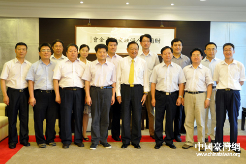 海基会董事长江丙坤会见山东省投资保障交流团。(图片来源:山东省台办)