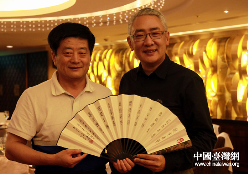 交流团团长董广驰(左)与捷年建设吕台年先生合影。(图片来源:山东省台办)