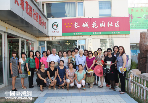 参访团一行在长城花园社区合影留念。(中国台湾网 李瑞艳 摄)