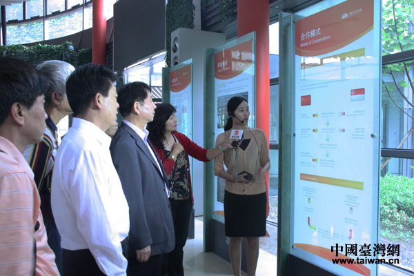 在中新天津生态城,引导员向台湾媒体代表做生态城介绍。(中国台湾网 郭庆娜 摄)