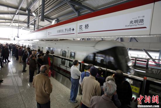 10月16日,中国国内第一条跨省地铁——上海轨交11号线花桥段开通试运营。从江苏昆山搭乘地铁到上海市区将成为现实。从上海安亭至江苏花桥只需8分钟,最低票价3元;从花桥站出发,1个多小时即可进入上海市中心。中新社发 汤彦俊 摄