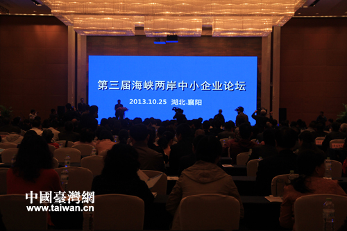 中国台湾网10月25日襄阳消息 第三届海峡两岸中小企业论坛25日在湖北襄阳市举行,来自大陆中小企业协会、全国台湾同胞投资企业联谊会、台湾中小企业总会、南台湾文化及经济产业联盟协会等近600名代表与会。