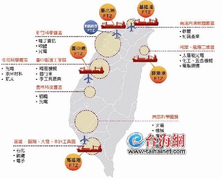 2013年,台“行政院”核定了“自由经济示范区规划方案”,希望透过“六海一空一农技”的规划,将自由贸易范围由“区内”逐渐扩大到全台湾。也就是说,“六海一空一农技”是台湾走向自由贸易的基石和起点。在这个提法之中,除去屏东农业生技园区之外,其他“六海一空”恰好是台湾最为重要的海运和空运港口所在地。在台当局自由经济示范区的两阶段推动计划中,今年8月启动的第一阶段规划强调在“六海一空”自由贸易港区内采用“前店后厂”概念,在智慧运筹、农业价值运销及国际产业合作等领域,促进人员、商品与资金自由流动。