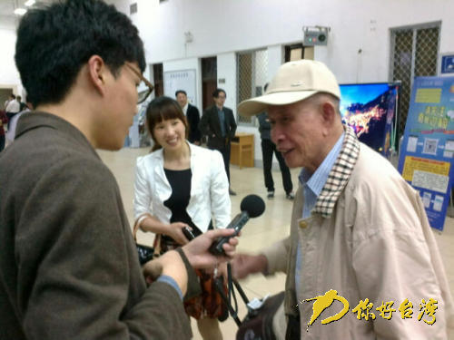 回乡祭祖的台湾乡亲正在接受记者采访 (梁恒 摄)
