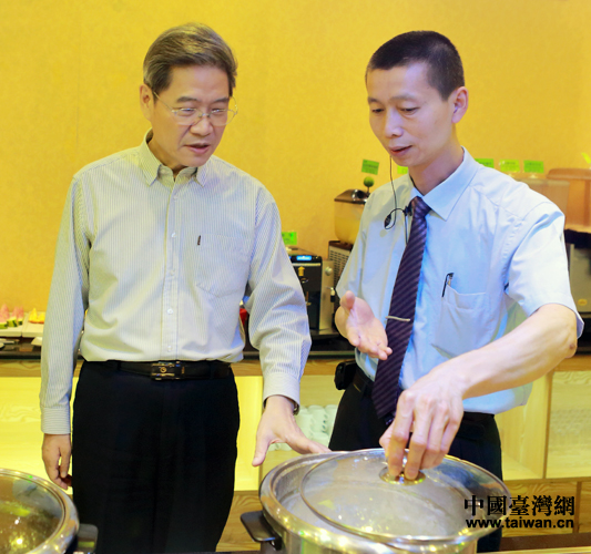 中共中央台办、国务院台办主任张志军14日下午在浙江杭州考察台资企业“素·缤纷”素食餐厅。(中国台湾网 于斯文 摄)