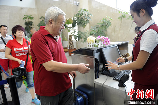7月2日,乘客在长春龙嘉国际机场办理登机手续,准备乘台湾华信航空的航班前往台北。当天,由台湾华航集团华信航空公司执飞的台北-长春-台北新航线正式开航,华航也成为首家运营吉林省航线的台湾航空运输企业。中新社发 张瑶 摄