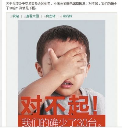 昨天,小米就此作出回应。小米在其官微贴出一个卖萌的图像并表示:“对不起,我们的确少了30台。”小米称台湾公司在前三轮开放购买网上公告总计28000台,而实际网上抢购资格和发放F码共计27970台(9339+9492+7389+1750),确实比公告数少了30台。随后,台湾小米公司也发出致歉声明,并承诺修正开放购买机制。