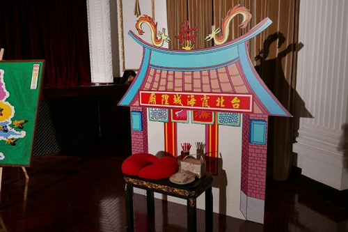 缩小版的霞海城隍庙,26日也出现在“上海微游双城”记者会现场。(台湾《联合晚报》/邱琼平 摄)