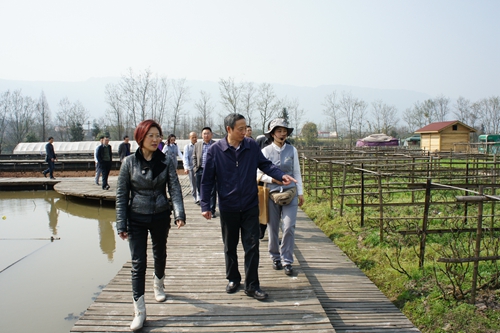四川省台办主任周敏谦考察岷江现代农业示范园。