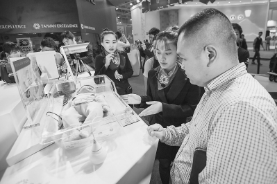 在台湾精品馆里,婴儿护理产品吸引了许多市民驻足观看。 本报记者 林双伟 摄