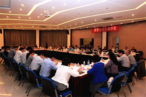 中国台湾网5月27日南京讯 5月25日,南京市台办和市台协在高新区管委会组织召开了台商沙龙第5季-台资企业转型发展与创业创新分享会,邀请南京市委宣传部、市发改委、市经信委、市科委、市商务局、市人社局、市国税局、市地税局、市工商局、高新区管委会等10个单位和部分台资企业参加,市台办主任曹劲松、副主任姜峰、高新区管委会副主任许扬汶等领导出席,市台协监事长孙根明、常务副会长林作彬等负责人参加。