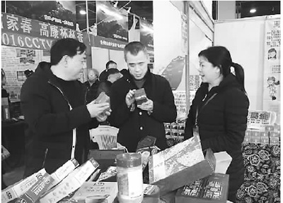 杭州市台办工作人员在台企展区查看台湾产品。(杭州市台办供图)