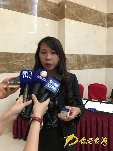 海峡两岸公共事务协会、青年委员会秘书长游淳惠接受媒体采访(你好台湾网 图)